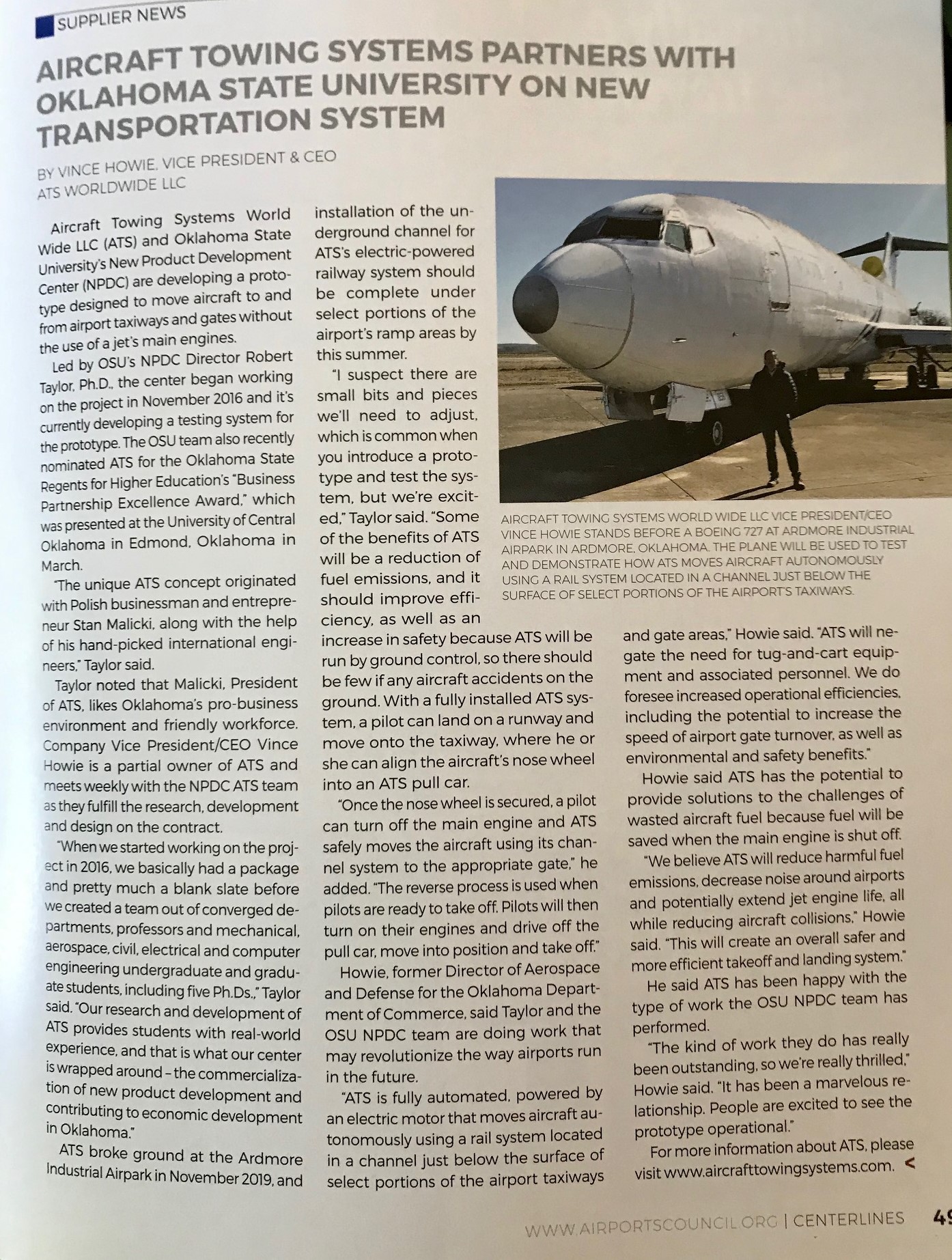 At ATS World Wide LLC, we've been busy getting the good word out about our partnership with OSU, the State of Oklahoma and our ATS prototype, which is currently under development and will be tested at the Ardmore Airpark in Ardmore, Oklahoma.
