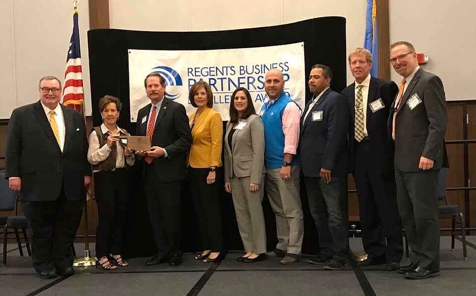 In the photo above, part of the ATS World Wide LLC Team and some of the Oklahoma State University's New Product Development Center team pose for a photo with the ATS award from the Oklahoma State Regents of Higher Education during an awards luncheon at UCO in Edmond, Oklahoma.