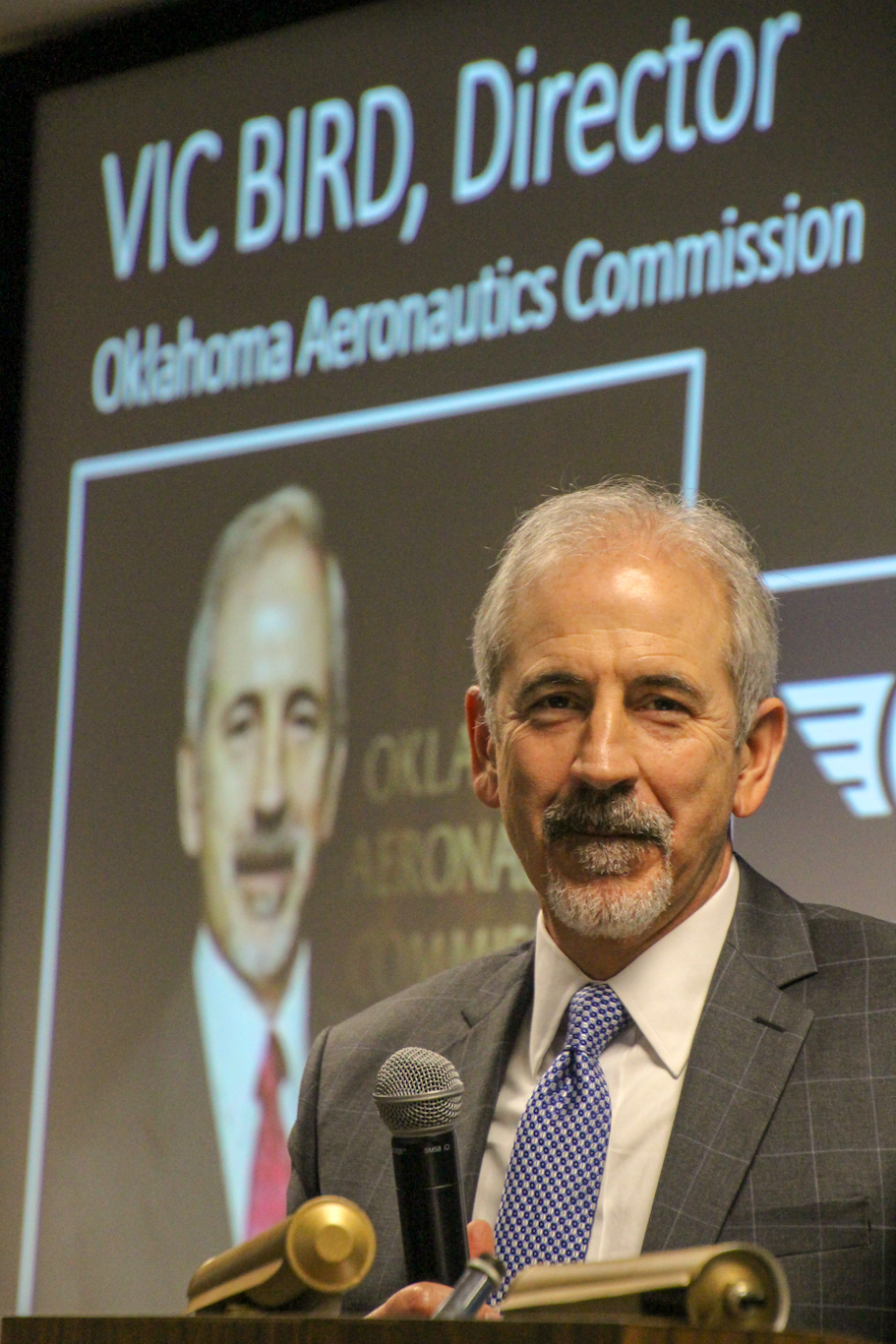 Distinguished retired Oklahoma Aeronautics (OAC) Commission Director Victor Bird has been named the Chief Operating Officer of Aircraft Towing Systems World Wide LLC. Here, he spoke during a recent OAC event.