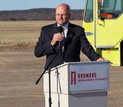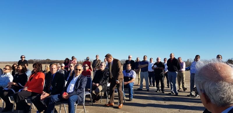 The groundbreaking was well attended with over 80 guests and dignitaries from around the state. The speakers at the event included Stan Malicki, President of ATS, from Poland, Vince Howie, CEO and Vice-President ATS, Brent Kissling, Executive Director Oklahoma Department of Commerce, Vic Bird, Director Oklahoma Aeronautics Commission, the Honorable John Moore, Mayor of Ardmore, and Mita Bates, President of the Ardmore Economic Development Authority. Attendees included representatives from Sen. Inhofe, Sen Lankford, Congressman Cole, Congresswoman Horn, State Representative Townley, Oklahoma Department of Commerce, Oklahoma Aeronautics Commission, Oklahoma Manufacturing Alliance, City of Ardmore, local business owners and other interested guests. The groundbreaking kicks off a three month construction period to install the working prototype for the Aircraft Towing System. An unveiling of the ATS system is planned for late March or early April 2020 when ATS will actually move an airplane and demonstrate the capabilities of the system.