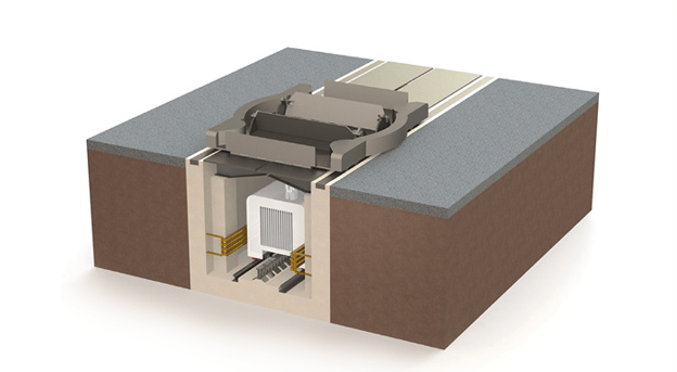 The taxiway channel consists of 15 to 17 meters, or 50- to 60 feet in length modules built into the airport taxiway at approximately 80 cm, or 2- to 6-foot deep and 120 cm or 3- to 4-foot wide. Steel plates cover the channel and it will use a brushes or rubber-seal system to close the 5 cm or 2-in gap between the steel plates. This reduces potential Foreign Object Damage (FOD) down in the channel. The channels are designed with a drainage and heating system where needed to keep the system operating during all weather conditions, such as rain, snow and ice.